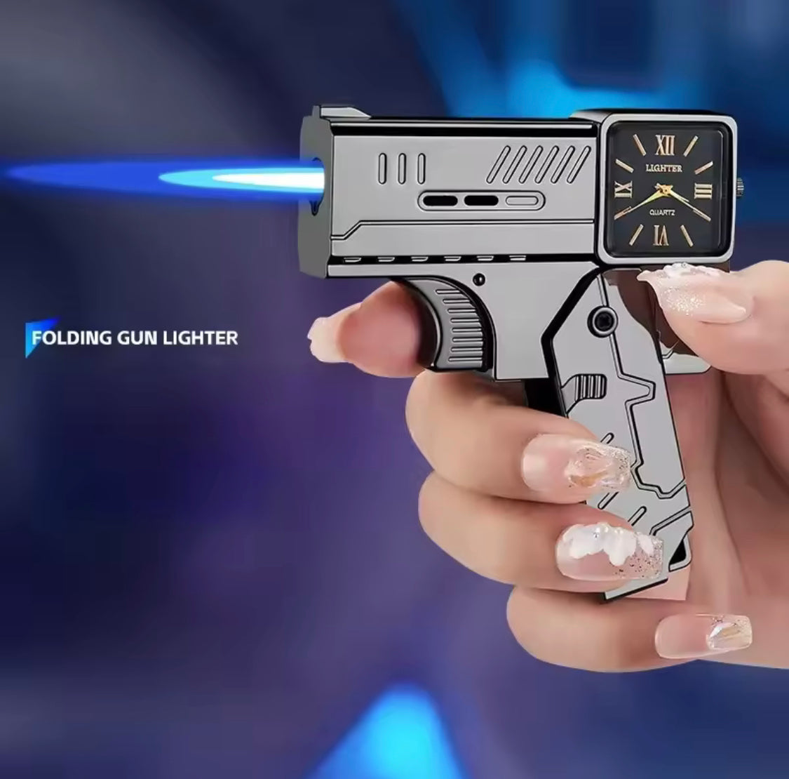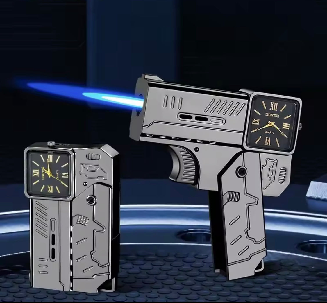 Refillable Gun Watch Lighter, Folding Watch Spray Gun Lighter, Creative Folding Gun Lighter