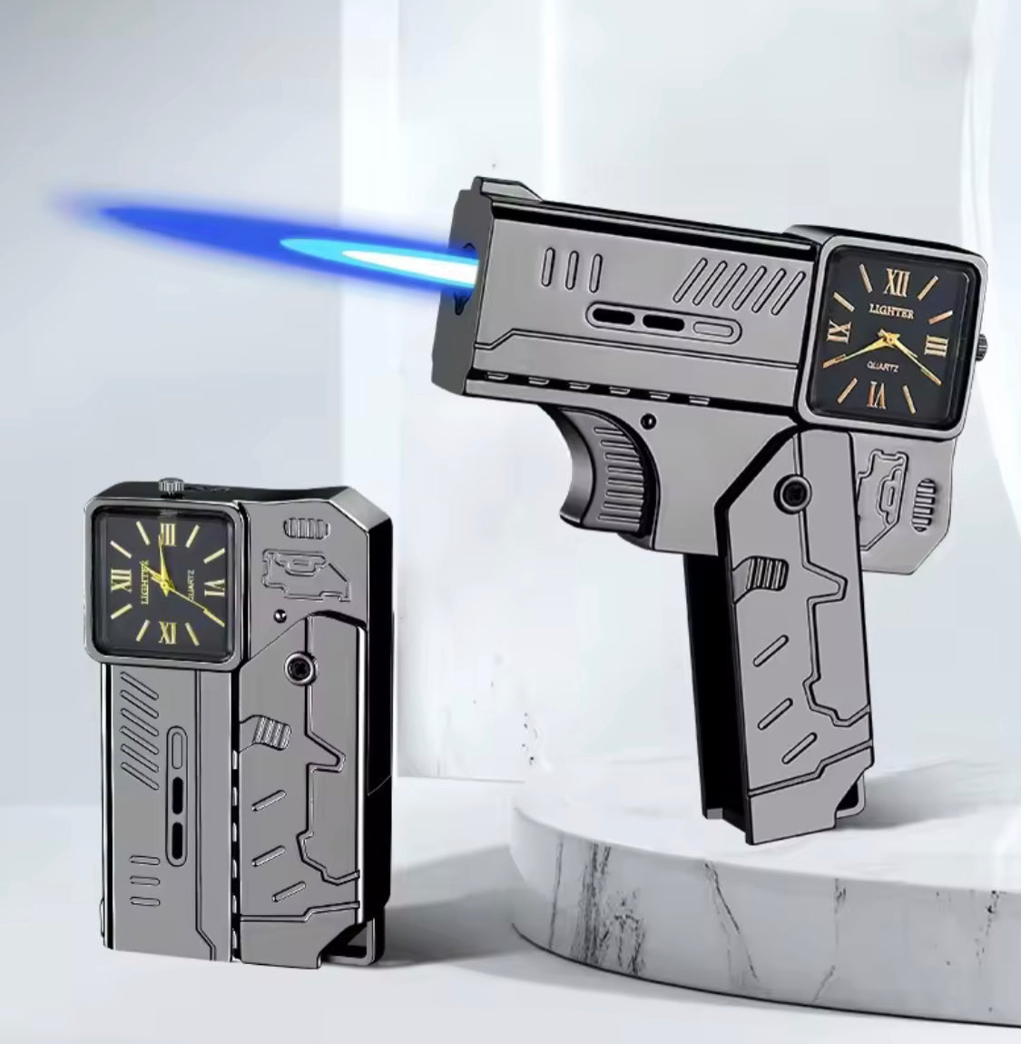 Refillable Folding Fancy Watch Lighter, Elevate your everyday carry with this sleek 2-in-1 accessory. The Refillable Folding Fancy Watch Lighter combines timeless style with modern practicality, featuring a fully functional quartz watch and a windproof, butane refillable lighter in one compact design. Its foldable structure adds a unique twist, making it easy to carry and use on the go. Perfect for collectors, smokers, or anyone who appreciates multifunctional elegance, this watch lighter is as conversation-worthy as it is convenient.